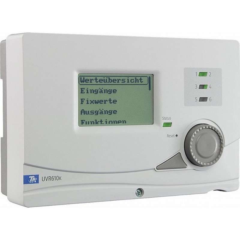 UVR610K er, med sine 6 indgange og 10 udgange præcis lige så fleksibelt programmérbar som UVR16x2, dvs. den kan styre bla. pumper, ventiler og shunts. De 10 indgange kan indstilles til Pt100, Pt1000 og et utal af andre følere og signalkilder.