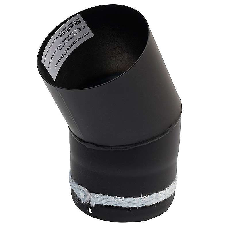 Sort røgrørsbøjning/knærør 30° med keramisk pakning. Knærør anvendes når det er nødvendigt i forhold til at man har brug for at ændre på retningen af røgrøret. Knærør kan bruges alene men man kan også sammensætte flere knærør og herved opnå flere vinkler. Ved at anvende 2 knærør der drejes i forhold til hinanden, kan man lave en hvilken som helst bøjning mellem 0-90°. Med indvendig diameter Ø80 mm. Metalbestos røgrør er lavet i 2 mm stålplade og er sortlakeret.