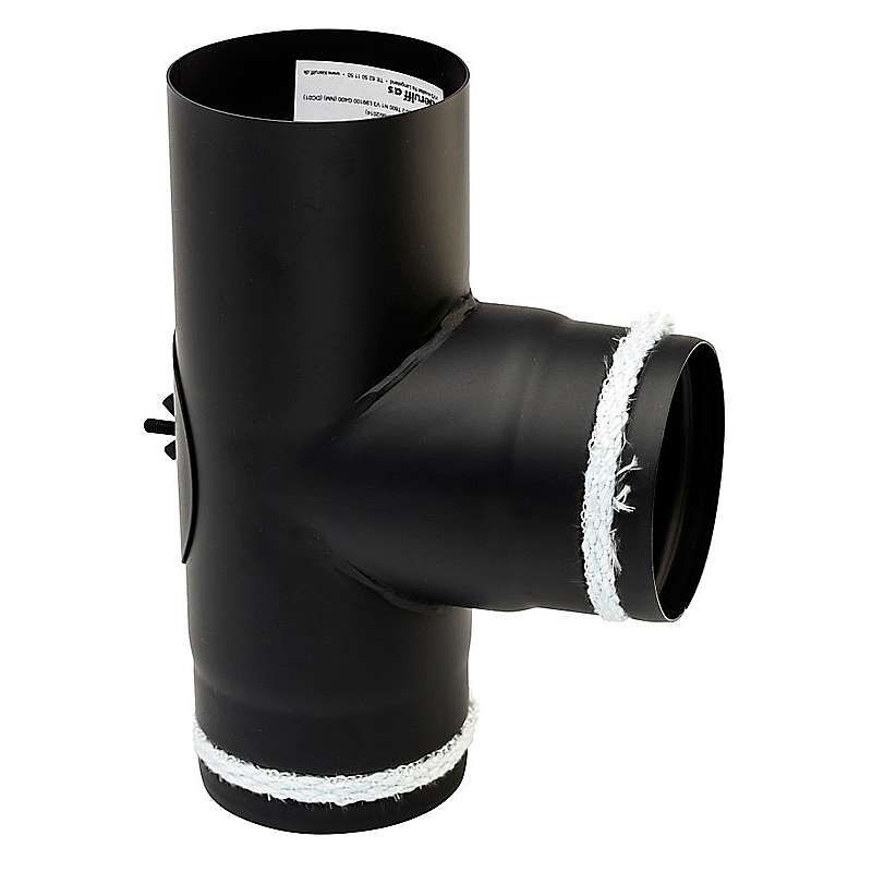 T-Stykke med renseklap og keramisk pakning. Man anvender renseklap hvor det er nødvendigt at kunne foretage rens/inspektion af røgrøret. Indvendig diameter Ø80 mm. Metalbestos røgrør er lavet i 2 mm stålplade og sortlakeret. Leveres med keramisk pakning.
