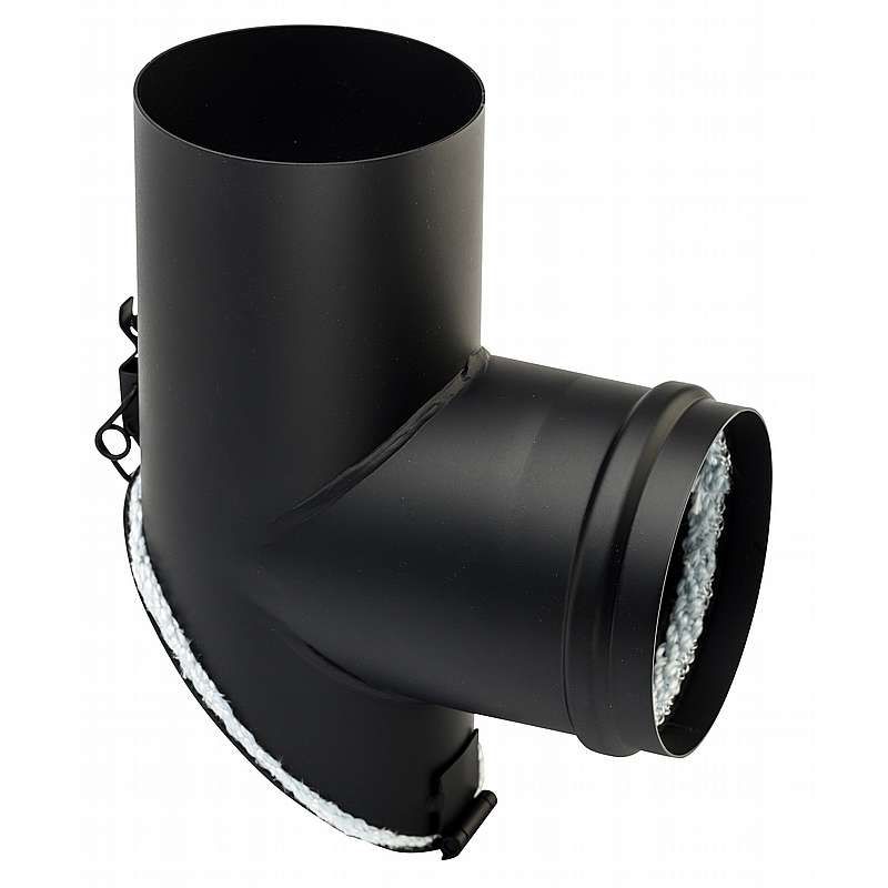 T-stykke med skrå renselem og keramisk pakning. Anvendes til kedler med bagudvendt røgafgang eller kedler med røgafgang i top, hvor stålskorstenen forbindes til kedlen med en forsætning. Indvendig diameter på T-Stykket er 80 mm. T-Stykket er lavet i 2 mm stål. Metalbestos sorte røgrør er celegnet til fastbrændsels samt oliefyrede kedler med en røggastemperatur >120° og <400° og som forbindelsesrør mellem kedel, brændeovn og skorsten.