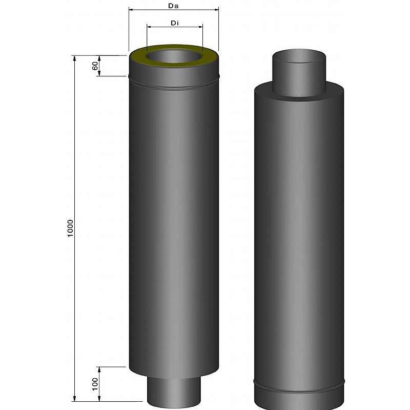 Isoleret Startsektion 900mm inkl. isoleringsskål - Ø150mm - Sort