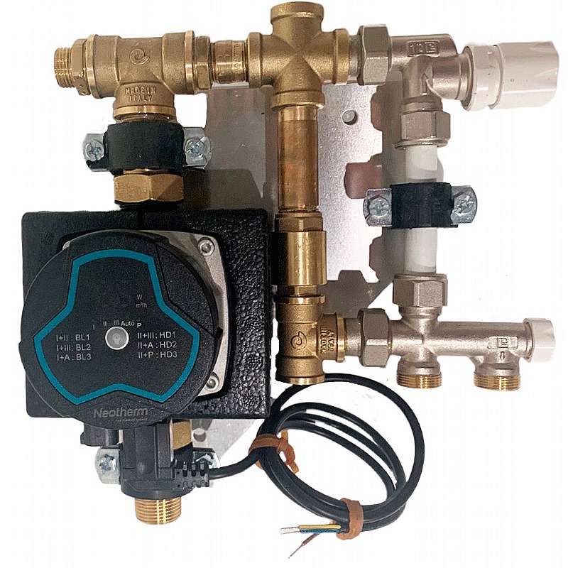 Neotherm MidiShunt er som standard beregnet til 1 -2 kredse. MiniShunt består af en cirkulationspumpe (Neotherm Cirkulatinospumpe 20/6-13), en termostatventil med kapillarrør, justeringsventil, kontraventil, luftskrue samt omløbere til 20 x 2 mm gulvvarmeslanger. Der skal monteres en shunt når gulvvarme skal tilkoblet et radiatorsystem. Det skal der fordi, at en gulvvarmekreds skal have en lavere fremløbstemperatur end radiatorkredsen. lNeotherm minishunt leveres monteret på en aluminiumsplade klar til ophængning. Alle rørtilslutninger er nedadvendt.
