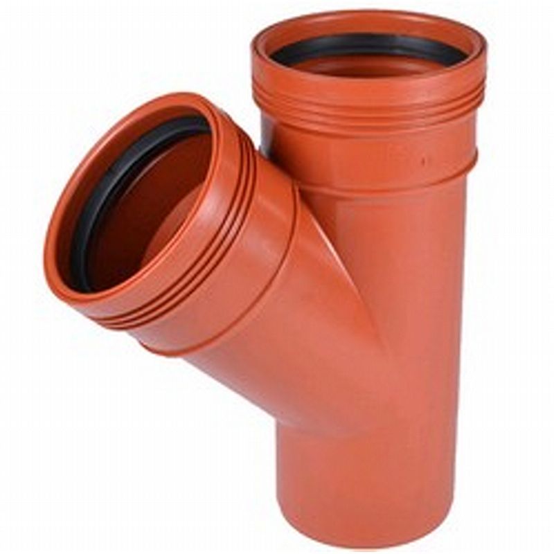 Wavin PP Grenrør 45° og to fastsiddende olieresistente tætningsringe, der ikke kan rykkes. PP grenrør anvendes der hvor det ønskes at samle 2 afløb til et afløb.