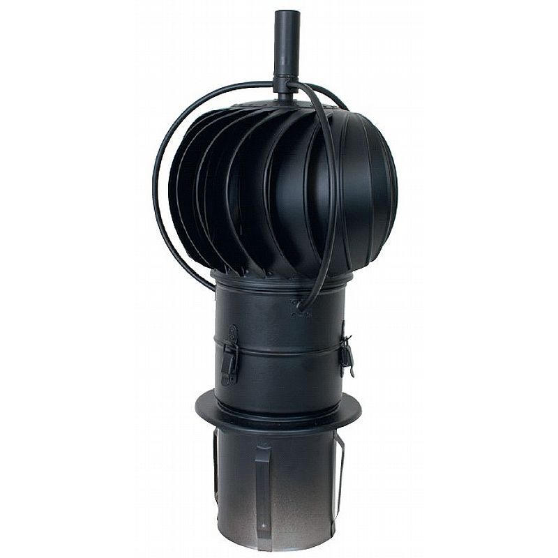 Torbowent røghætte med eksterne leje til skorsten enten modulopbygget eller stålskorstene. Passer til skorsten med indvendig diamter Ø 150 mm. Turbownet røghætten er en røgvender der er din garanti mod tilbageslag af røg og som under gunstige forhold forbedrer trækket i din skorsten.