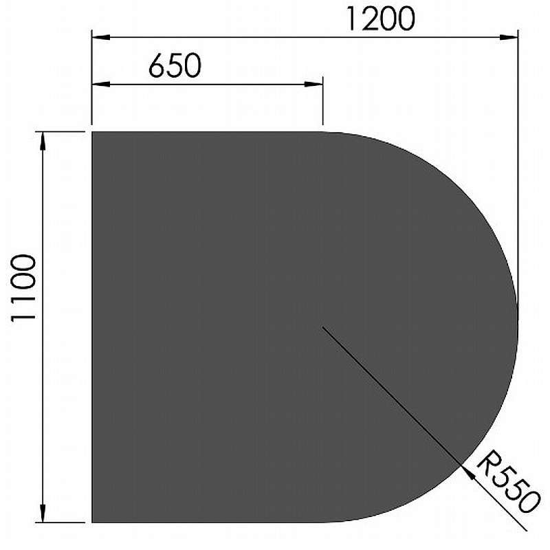Halvrund stålgulvplade - 2mm - sort - A:110 x B:120cm