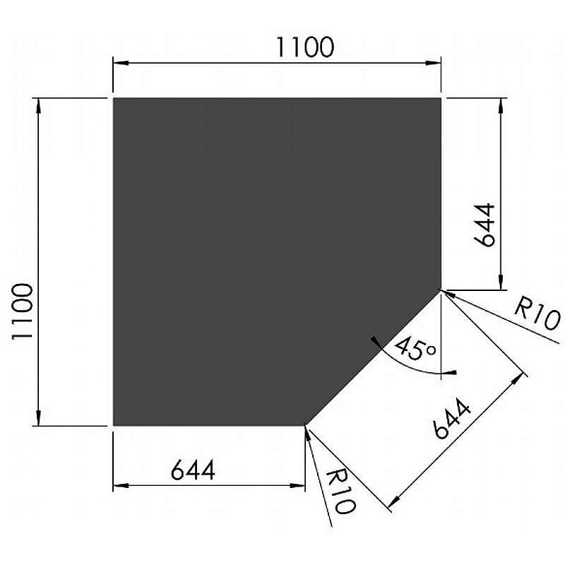 Femkantet stålgulvplade - 2mm - sort - A:110 x B:110cm C:65cm