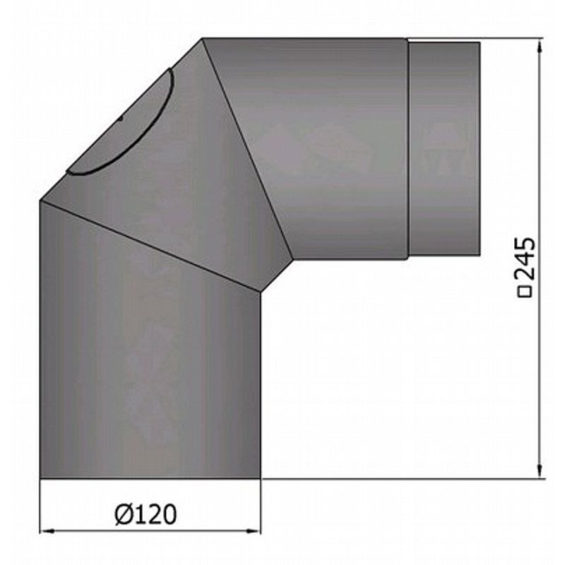 Røgrør kort model bøjning 2x45gr. med klap. Sort - Ø120mm