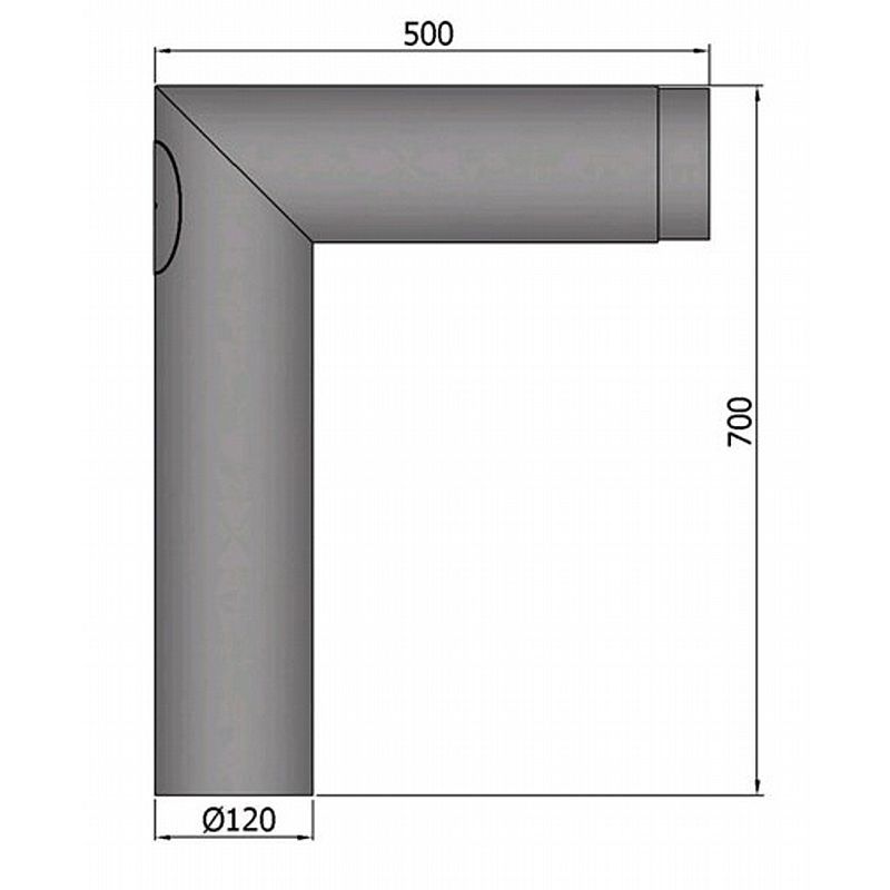 Knæ røgrør 90gr. med klap, 700x500mm, Sort - Ø120mm