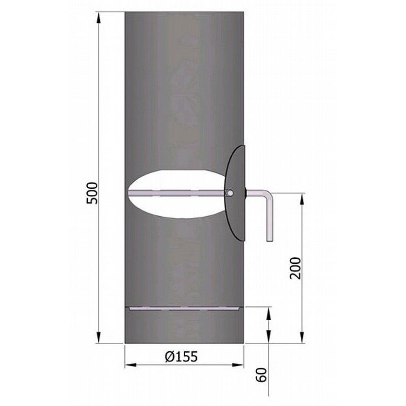 Lige røgrør cylindrisk med kondensring, klap og spjæld - Sort - Ø150 mm