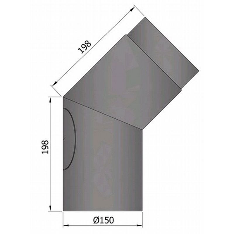 Røgrørs Bøjning 45 gr. med klap - Sort - Ø150mm