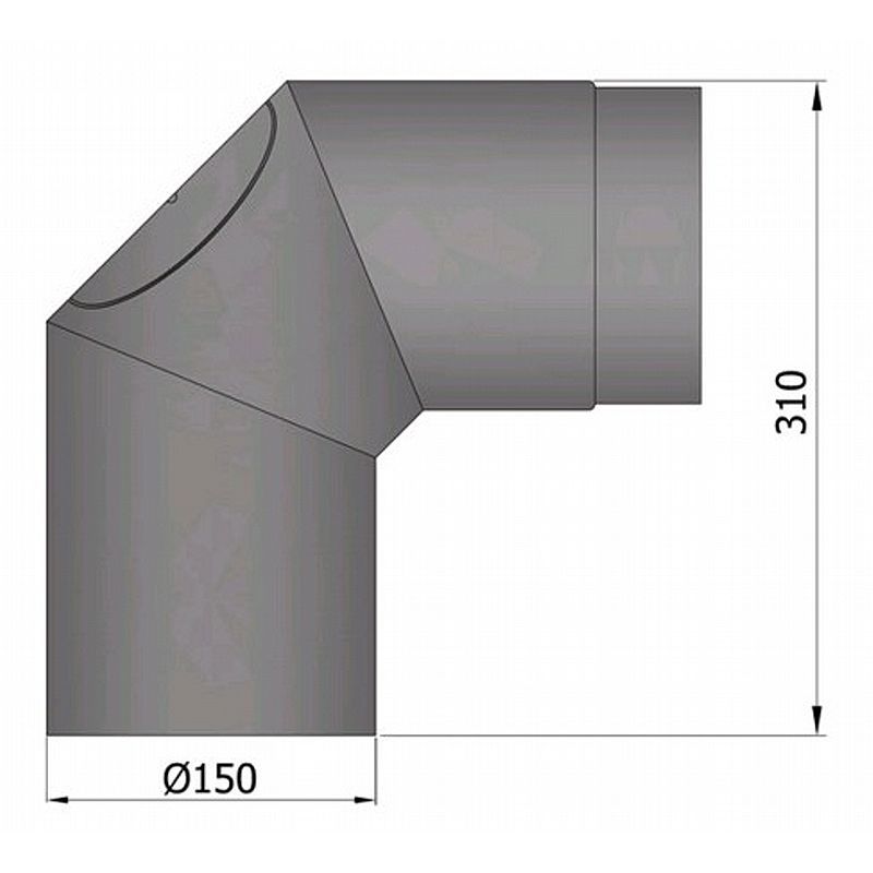 Røgrørs Bøjning 2x45 gr. med klap - Lys grå - Ø150mm