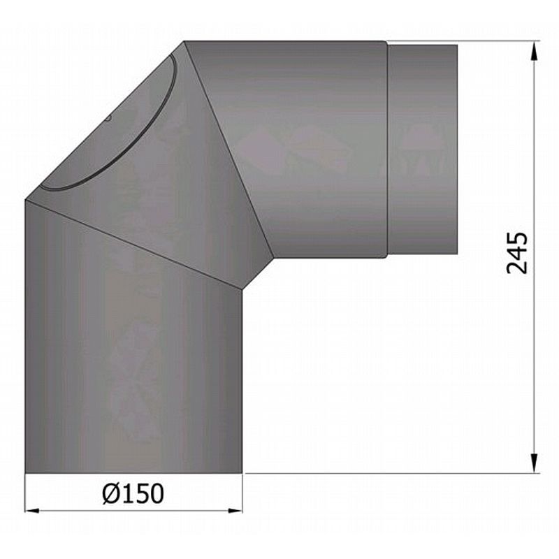 Røgrørs Bøjning 2x45 gr. kort model med klap - Lys grå - Ø150mm
