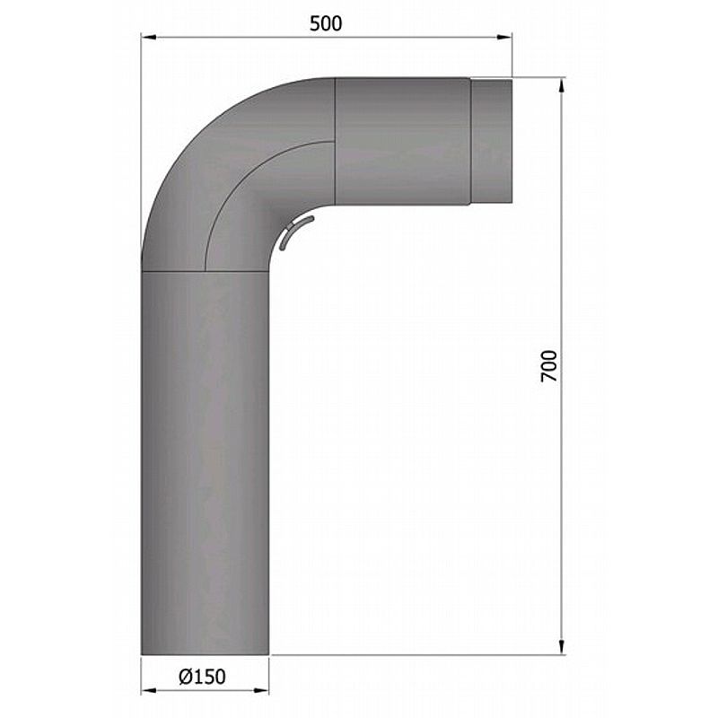 Røgrørs Bøjning Fullform 90 gr. med dør, 700x500mm - Sort - Ø150mm