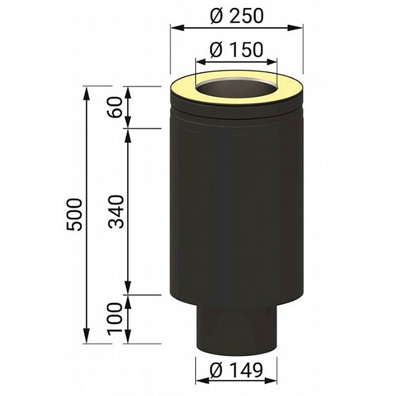 Isoleret startsektion 400mm, sort Ø150mm (Design Line)
