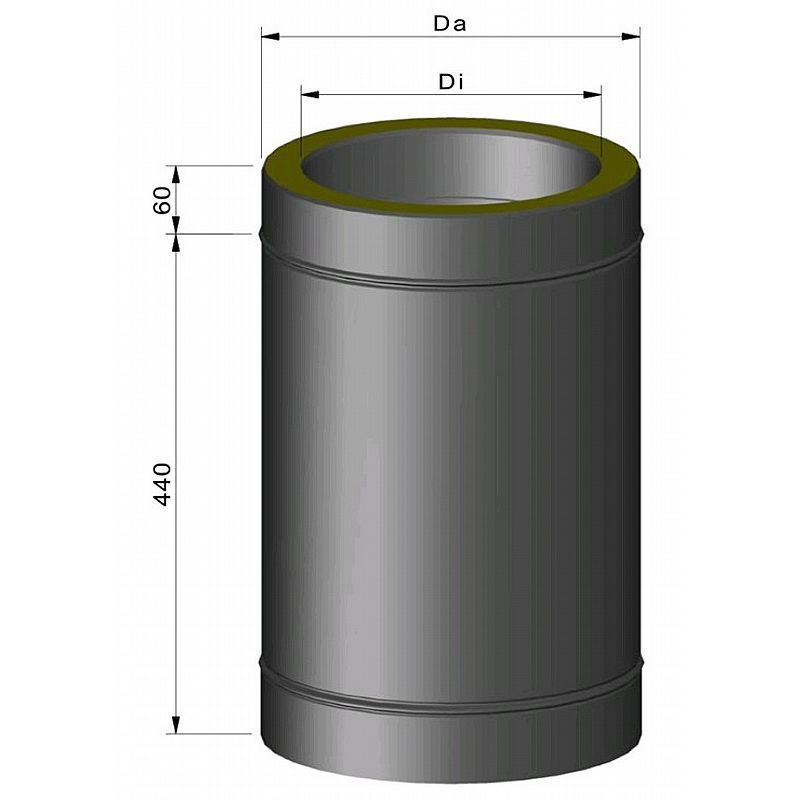 Isoleret sektion 500mm - Ø100mm - Sort (TermaTech)