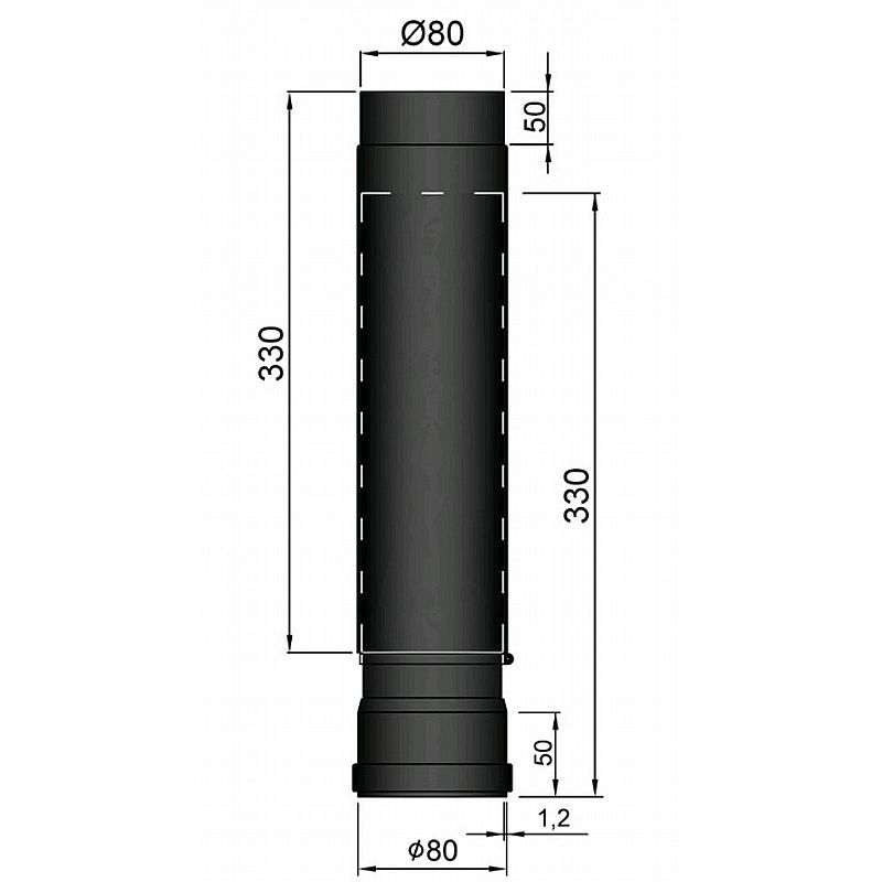 Lige røgrør teleskopisk L=410-610mm, Ø80mm - Sort
