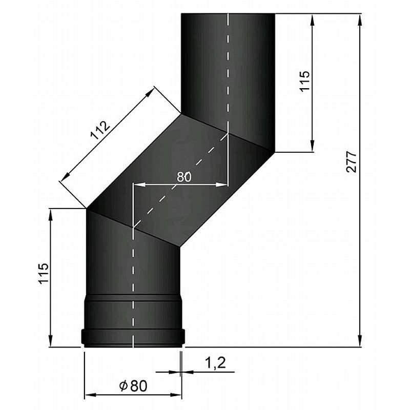 Røgrørs bøjning S - forskyder 80mm L=277 - Ø80mm - Sort