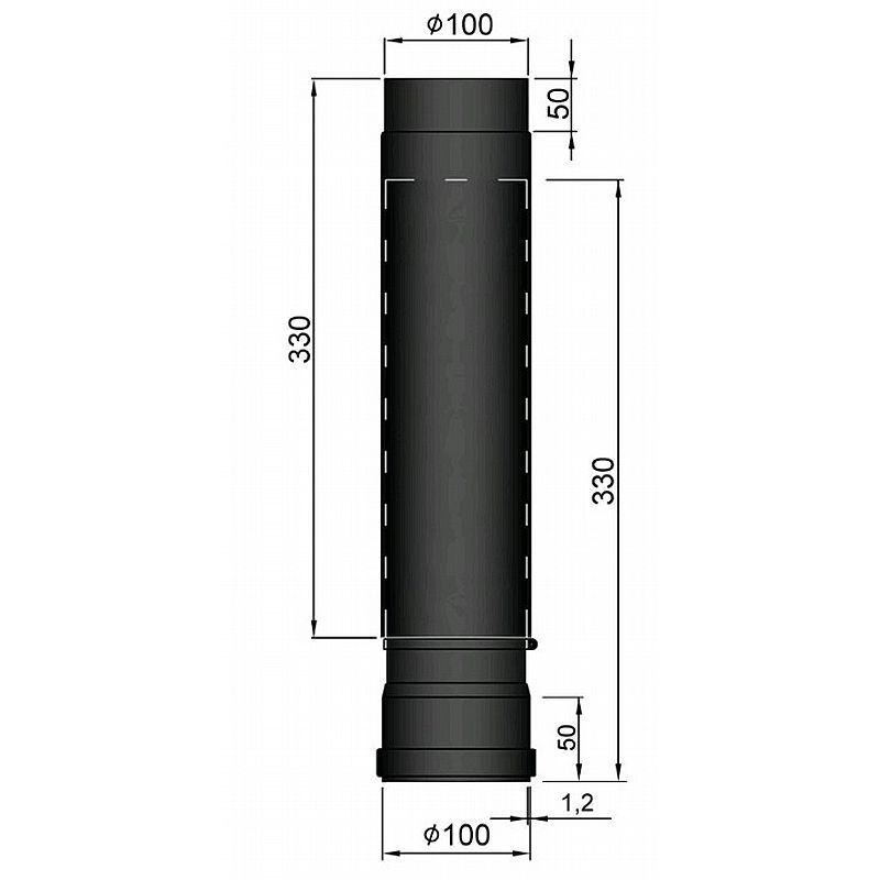 Lige røgrør teleskop 410-610mm - ø100m, sort