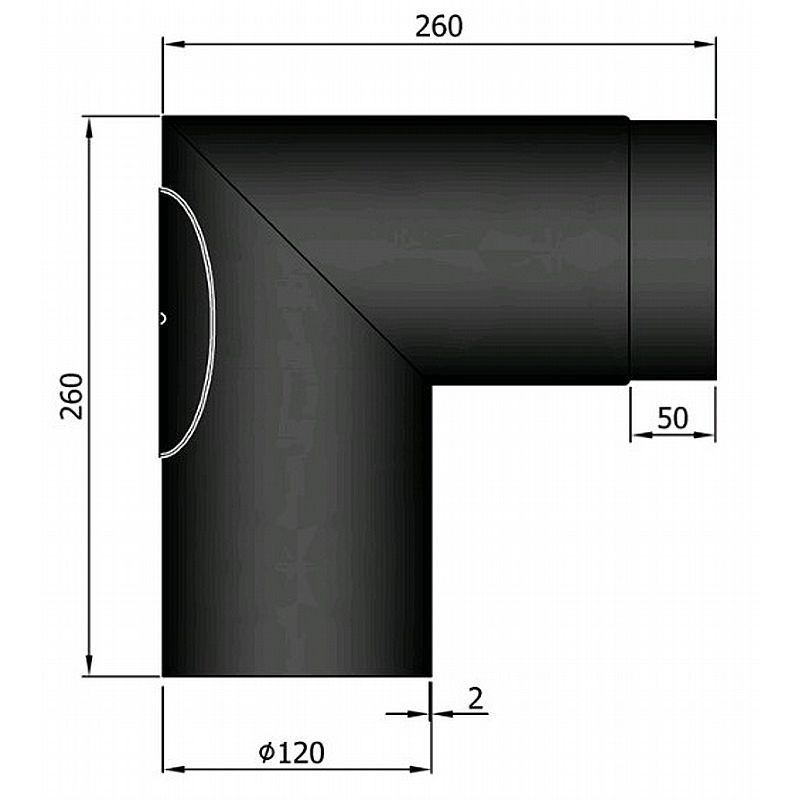 Knæ røgrør 90gr. med klap - Sort Ø120mm
