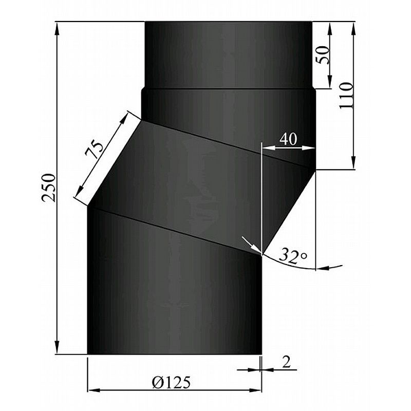 Røgrørs bøjning S - forskyder 40mm L=290 - Ø125mm - Sort