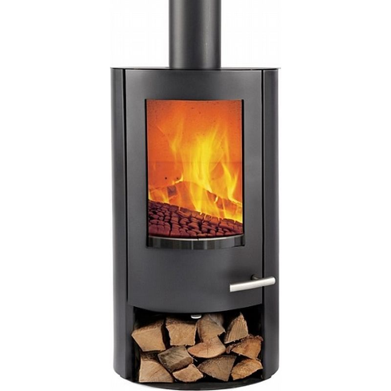 Stor glasrude og med plads til opbevaring af træ i bunden. Energiklasse A+. Farven er flot mat sort med håndtag i børstet stål. Topmoderne ovn med sidste nye teknologi. Er rmeget velegnet til mindre rum eller sommerhuse. Opvarmer 30 – 120 m2. Bedst til prisen!