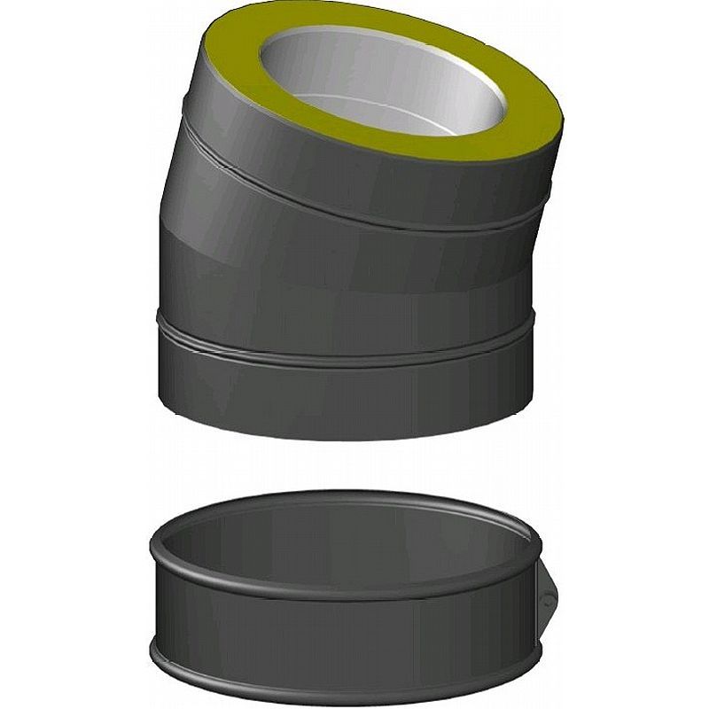 Isoleret bøjning 45 gr. med spændebånd - Ø200mm - Sort