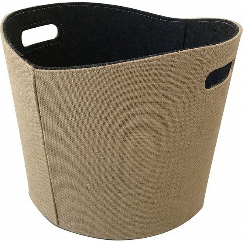 Brændespand i filt beklædt med Jute. Smuk og enkel rund brændekurv lavet i filt og Jute. Kurven kan bruges til mange formål ud over opbevaring af træ, med sit flotte design og diskrete farver. Indvendigt er kurven i filt og meget mørk,- næsten sort i farven. Udvendigt er den beklædt med Jute, som er vævet lige som det populære hessian. Det giver en meget flot kontrast mellem det lyse og mørke og samtidig en helhed med naturmaterialer.