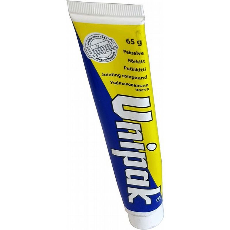 Unipak Paksalve. Tube med 65 gram grå højviskos paksalve. Sammen med paksalve skal der anvendes pakgarn for at lave tætte gevindsamlinger. Paksalven er godkendt til drikkevand af Trafik, Bygge og Boligstyrelsen og er blevet testet af Dansk Teknologisk Institut.