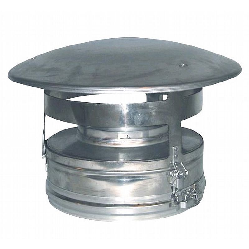 Skorstenshætte til Multi50 stålskorsten. Skorstenshætten er enkel og fin i designet og skæmmer ikke i toppen af skorsten. Den beskytter desuden med indtrækning af vand i toppen. Der er lavet en hængslet konstruktion, så det er let for skorstensfejeren, at løsne den og tippe den bagover ved fejning. Hætten er let at opsætte og der medleveres låsebånd.