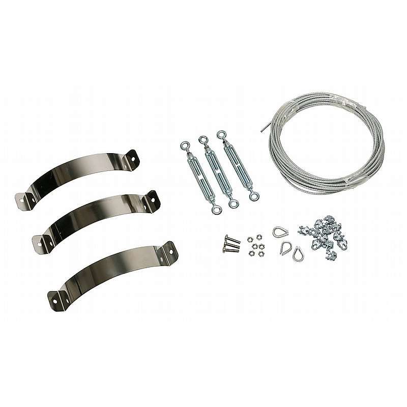 Når skorstenen har en fritstående højde på 1,5 meter over taget, anvendes der bardunsæt til stabiliserering og sikring af skorstenen. Dette gøres for at den står fuldstændig stabilt og sikkert,- også krafitg blæsevejr. Bardunsættet består af bånd, strammer, låse samt wire på 10 meter. Skal der være mulighed for at rense kan der monteres T-stykker.
