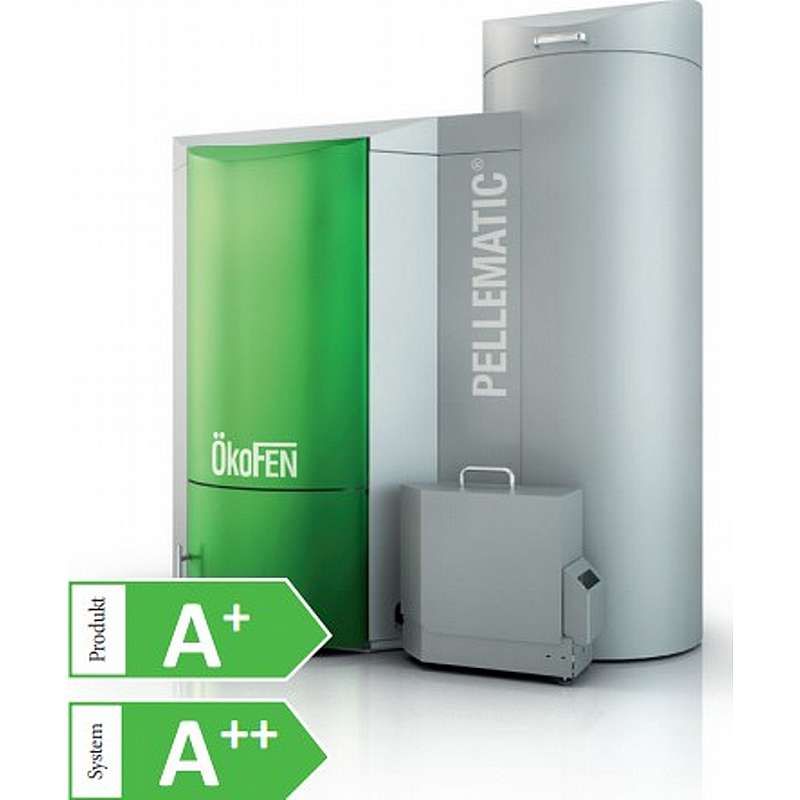 Pellematic 4-12 kW med 130 kg silo. Fuldautomatisk selvrensende træpillefyr hvor du intet skal foretage dig undtaget at tømme askebeholder og fylde træpiller på. Stabil og høj virkningsgrad 94,7%. Der er stort set ingen vedligeholdelse på dette kraftfulde selvkørende fyr. Pellematic 12 kW leveres her med 130 kg silo. Dette produkt har en meget omkostningseffektiv drift. Med forbrændingskammer i rustfri stål samt integreret returløbshævning. Virkelig kraftfuldt pillefyr som er velegnet både til nybyggeri og modernisering. Lavt pilleforbrug pga. automatisk tilpasning af driften. ÖkoFEN pillefyr sælges kun inklusiv montering.
