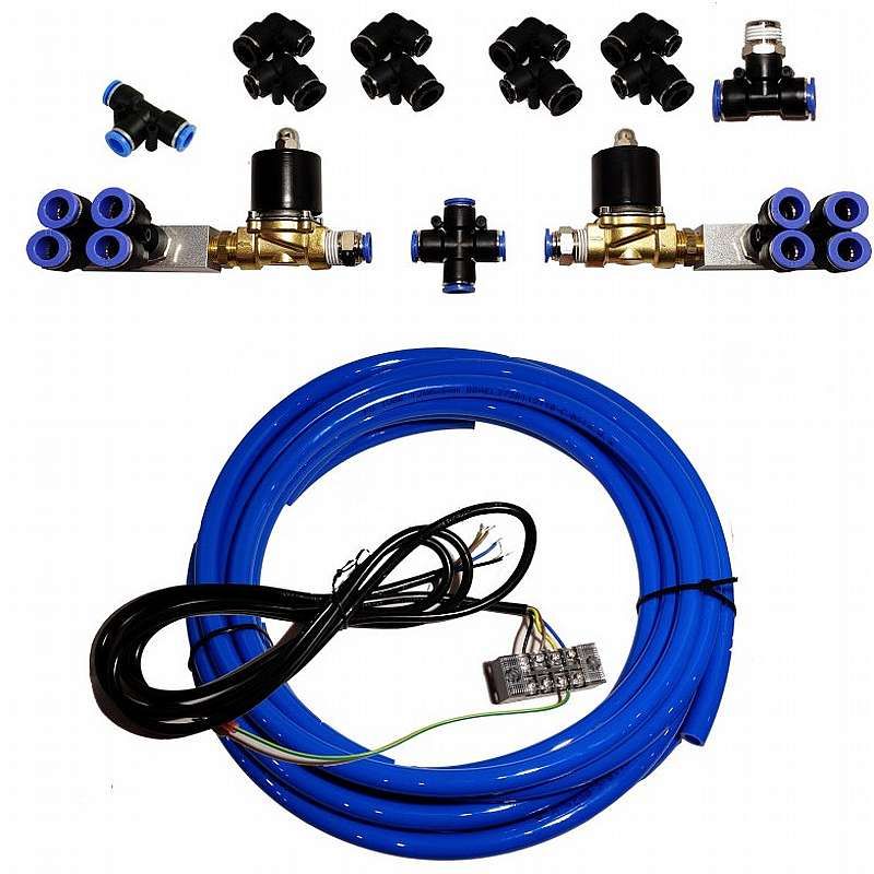 Trykluft KIT til RTB V7 og V13 30 kW indeholder alt lige fra Push-In fittings til overgange, brystnipler og slange til kompressorrens. Ligeledes medleveres jordkabel med mere.
