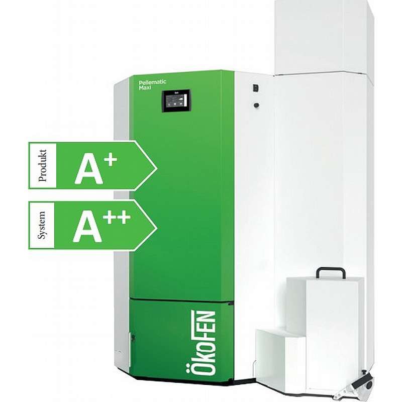 Pellematic Maxi 15-48 kW med Vakuum sugesystem til transport af træpiller fra ekstern silo. Moderne fuldautomatisk pillefyr udviklet og produceret af østrigske ÖkoFEN. Dette pillefyr skal hverken passes eller plejes og er selvrensende. Der er minimalt vedligehold. Der skal bare tømmes askebeholder. Med smart varmestyring. Høj virkningsgrad og en stor udnyttelse af brændslet er med til at give et lavere forbrug og kan derved også være med til at forbedre varmeøkonomien. Dette smarte "varmesystem" kan reducere dine varmeudgifter særligt,- lad os hjælpe med at beregne hvor meget. Pellematic Maxi er velegnet til store bygninger, til erhverv, skoler og institutioner og lignende.