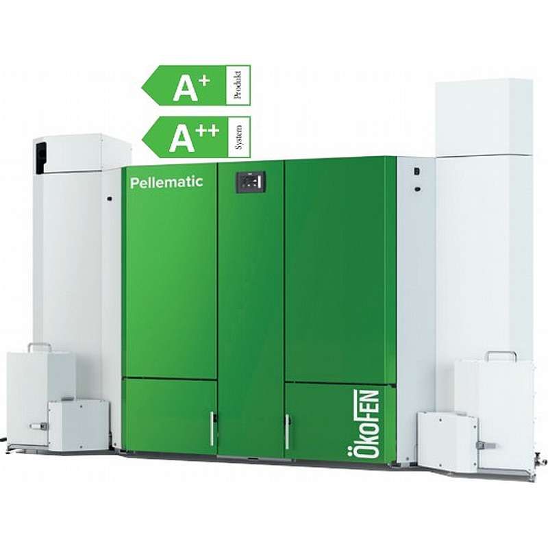 Pellematic Maxi 15-96 kW med sugesystem til transport af træpiller fra en ekstern silo. Pellematic Maxi er velegnet til kaskadeopbyning og er specielt udviklet til opvarmning af de større bygninger, virksomheder, institutioner med flere. Med intelligent varmestyring. Fyret er fuldautomatisk med automatisk daglig rens og indeholder en smart teknolog, som gør det nemt at have pillefyr. Der er ikke noget dagligt vedligeholdelse. Virkningsgraden er høj og kvaliteten i top. Se bare de mange fordele herunder.