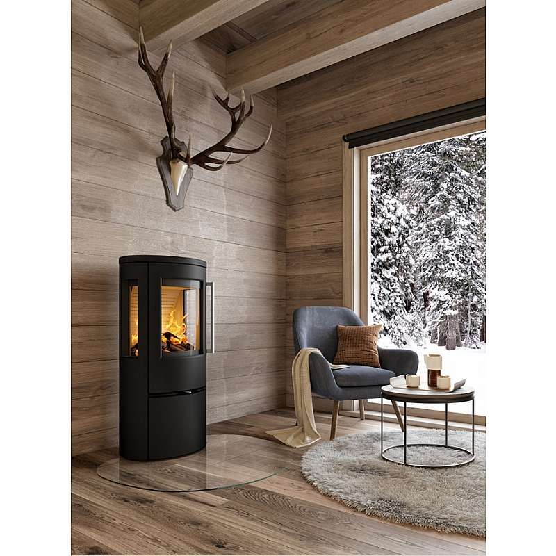 TT23RG stål-brændeovn med flotte runde sider, store sideglas og en flot afrundet og let buet front med smukt udsyn ind til den varmende ild. TT23RG er en del af den nye serie fra TermaTech. Her får du en nem betjening, et super smukt design og mange lækre detaljer. Med både glassider og en stor glaslåge i front får du virkelig et kig ind til flammerne. Det spreder hygge i hjemmet. Der er 5 års garanti på TT23RG brændeovn.