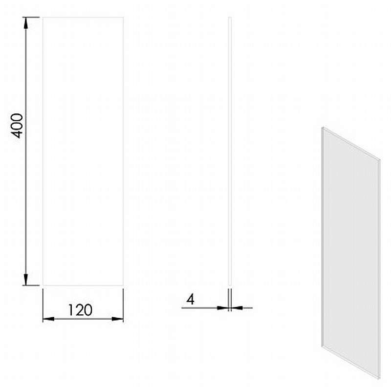 Sideglas lige V+H 120x400mm (TT23RG+TT23RGS) Inder glas