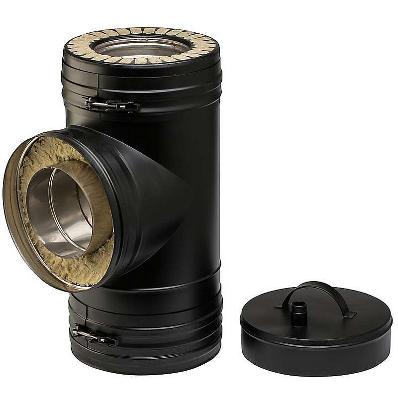 T-stykke m/sodskål og aftap - 90 gr. ø130mm, sort (Wood)
