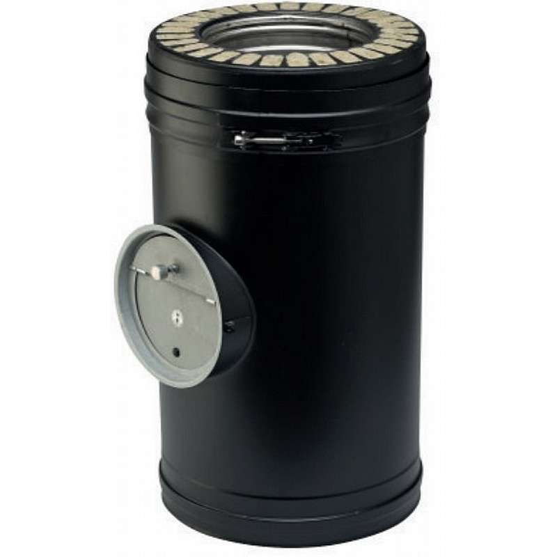 Isoleret skorstenslængde ø100mm med trækstabilisator . længde 450mm (Wood)
