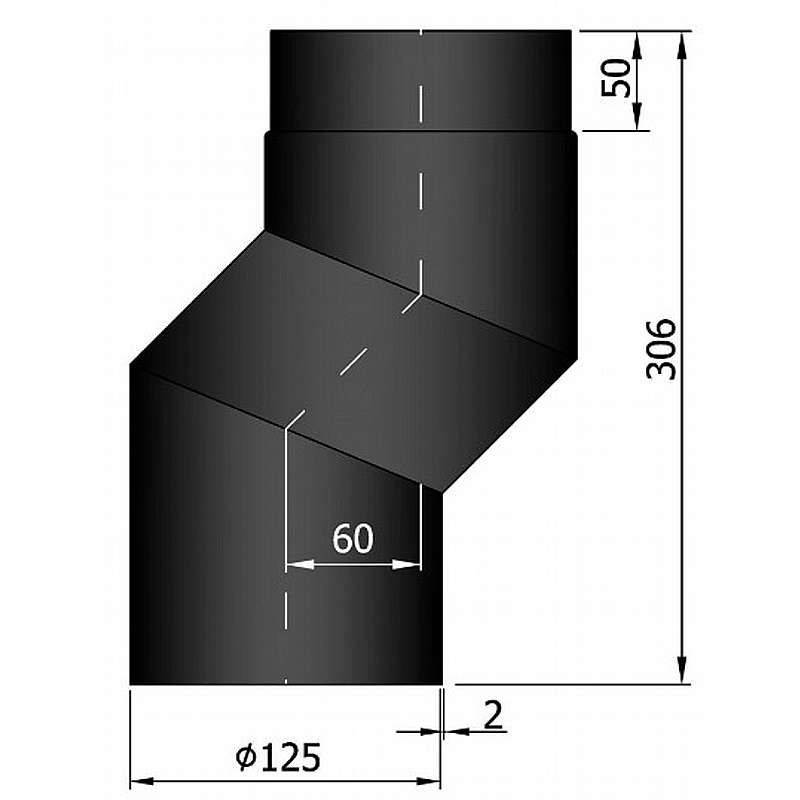 Røgrørs bøjning S - forskyder 60mm L=306 - Ø125mm - Sort
