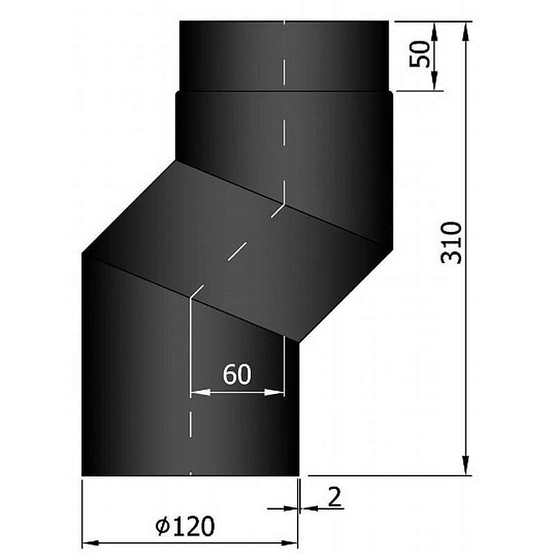 Røgrørs bøjning S - forskyder 60mm L=310 - Ø120mm - Sort
