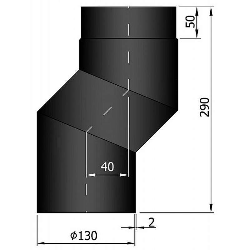 Røgrørs bøjning S - forskyder 40mm L=290 - Ø130mm - Sort