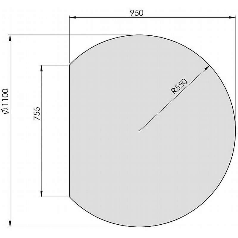 Glasgulvplade cirkel afskåret - 6mm - A:110 x B:95cm