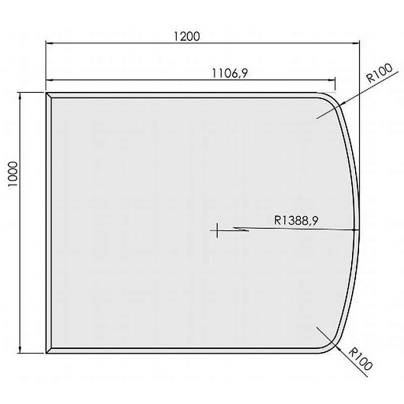 Glasgulvplade fladbue m.facet - 6mm - A:100 x B:120cm