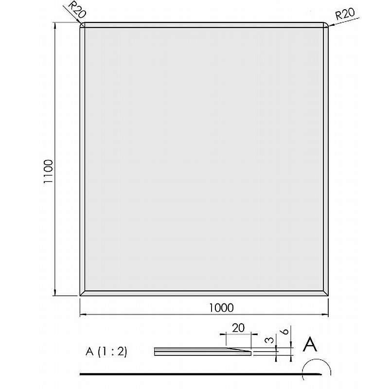 Glasgulvplade firkantet m/facet og afr. hjørner- 6mm - A:100 x B:110cm