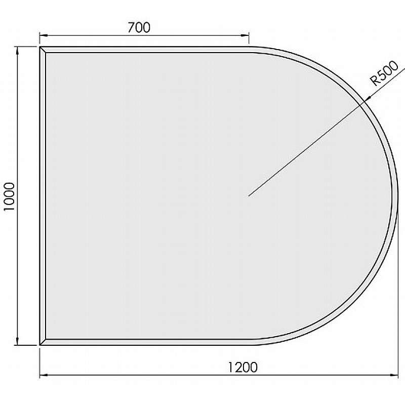 Halvrund glasgulvplade m.facet - 6mm - A:100 x B:120cm