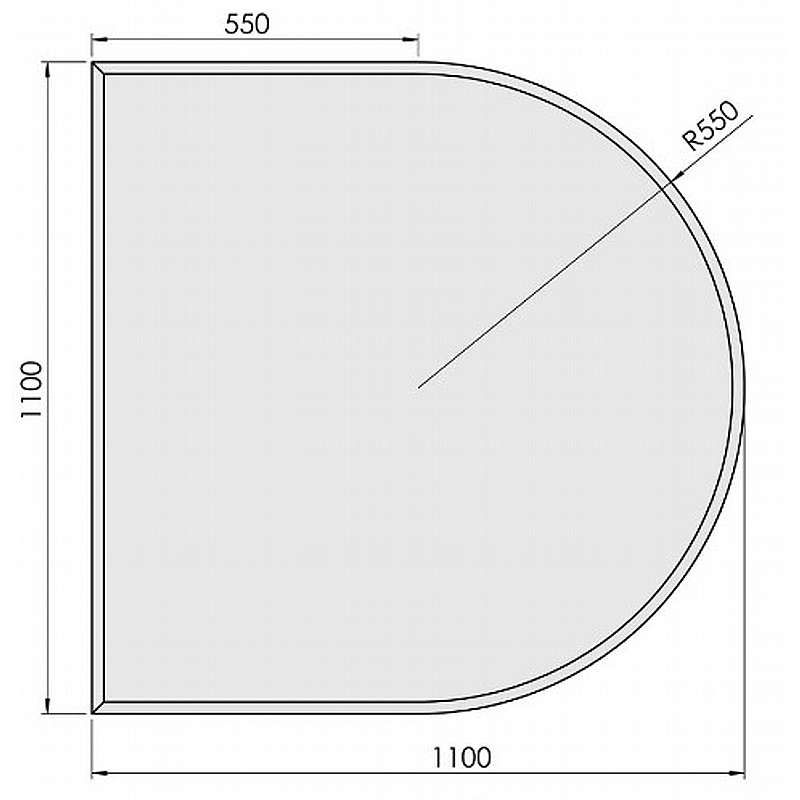 Halvrund glasgulvplade m.facet - 6mm - A:110 x B:110cm