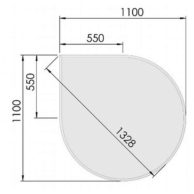 Glasgulvplade dråbeformet m.facet - 6mm - A:110 x B:110 x c:55cm