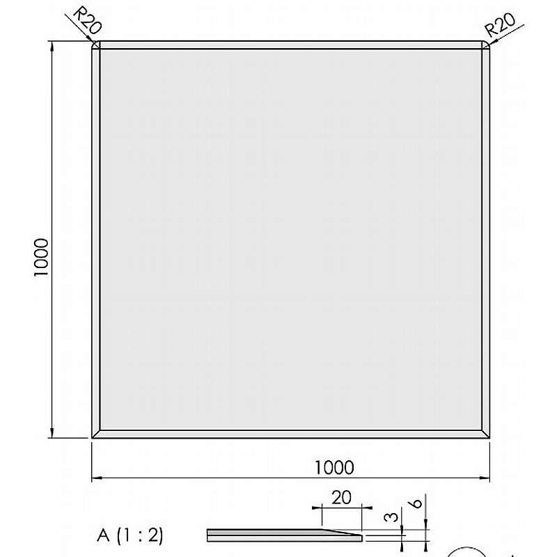 Glasgulvplade firkantet m/facet og afr. hjørner- 6mm - A:100 x B:100cm