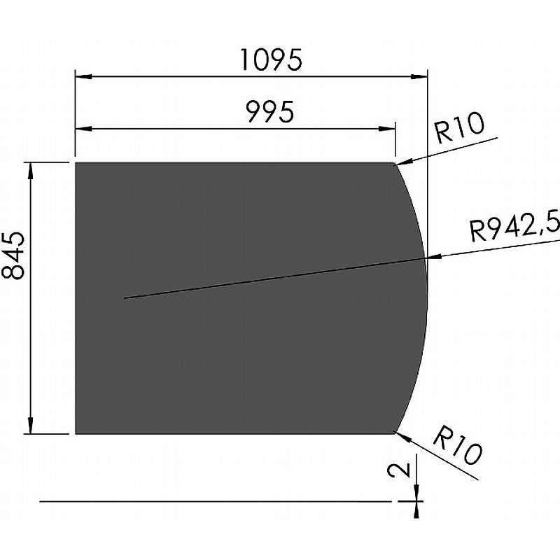 Stålgulvplade m flad bue - 2mm - sort - A:85 x B:110cm