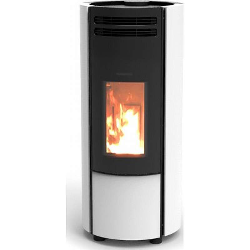 Thermorossi Pilleovn POP Star 6-10kW med topafgang (Hvid). Super flot og moderne pilleovn med 80 mm topafgang. Med selvrensende brænderskål, stål og støbejerns brændkammer samt skjult display. Det er muligt at slukke/tænde konvektionsblæser efter ønske og behov. Thermorossi POP Star pilleovn er ikke bare super flot, den er også et rigtig godt varmesupplement til hjemmet. I den hvide farve med den smukke sorte front fremstår ovnen moderne og er virkelig elegant at se på. Opvarmer 80-120 m2. Støjsvag, høj virkningsgrad (96,7%) og virkelig nem at betjene. Fjernbetjening medfølger.